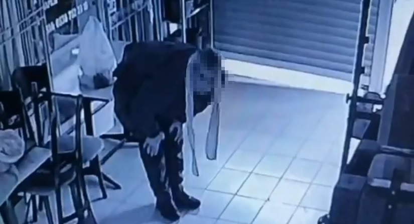 Yaşanan hırsızlık anı, iş hanının güvenlik kamerası tarafından kaydedildi. Görüntüde telefonu gören hırsızın gerilme hareketleri yaptığı, ardından telefonu cebine attığı ve ısınma hareketlerine devam edip bir süre daha vakit geçirdiği görüldü.