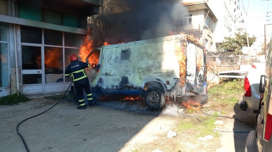 Henüz sebebi bilinmeyen bir nedenle çıkan yangın sonrası kısa sürede alev topuna dönen ticari araç itfaiye ekiplerinin müdahalesi ile söndürülürken, yangın sonrası kullanılmaz hale geldi.