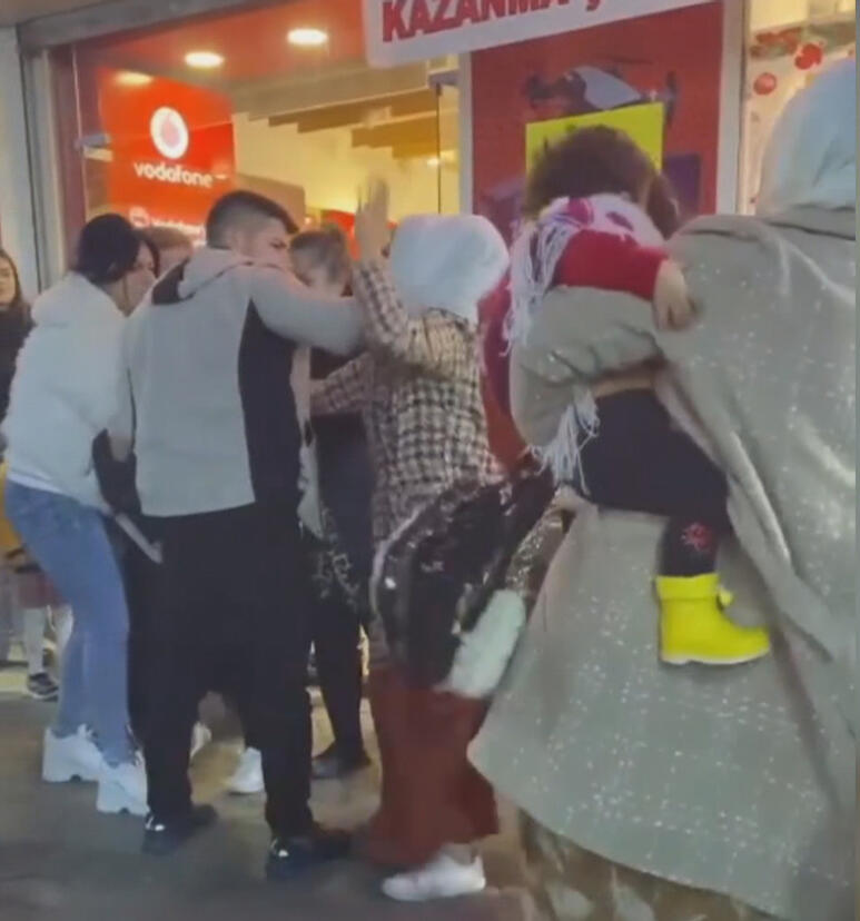 Kavga eden iki kadını çevredekiler ayırmakta güçlük çekti. Kavgaya tutuşan iki kadın, birbirlerinin saçını çekti. Çevredekiler, olan biteni anlamaya çalışırken, bir erkek de kadını ayırmaya çalıştı. Kavga sırasında kadın, yakını ile ayırmaya çalışan erkeğe de vurdu. O anlar vatandaşların cep telefonu kamerasına yansıdı. Kavganın, kadınlardan birinin eşini, sevgilisi olduğu öne sürülen kadınla el ele görünce çıktığı öne sürüldü.