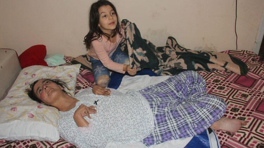 Genç kadının 6 yaşındaki kızı ise annesini bebek gibi sevip onun bir an önce ayağa kalkmasını istiyor.