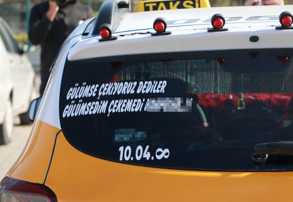 Öte yandan emniyet otoparkına çekilen taksinin bagaj kapağı, ön camı ve arka tamponundaki 'taşıyıcı', 'kaptan', 'gülümse çekiyorum dediler, gülümsedim çekemediler'” yazıları dikkat çekti.