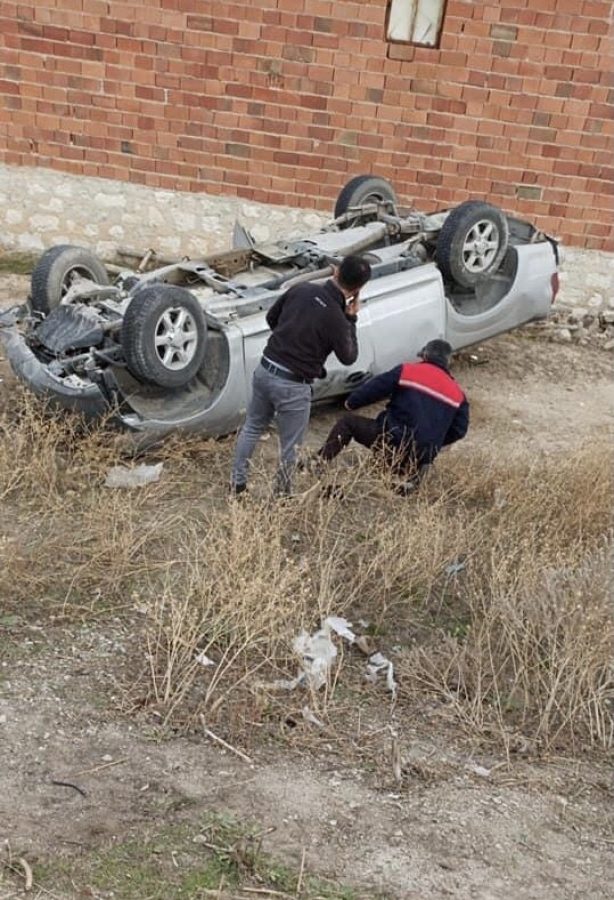 Kaza, önceki saat 16.00 sıralarında Altınekin ilçesi Akıncılar Mahallesi'nde meydana geldi. Edinilen bilgiye göre, M.Y.Ö. (33) idaresindeki pikap, sürücünün direksiyon hakimiyetini kaybetmesi sonucu şarampole takla attı.