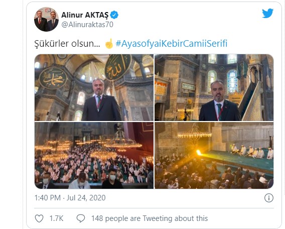 Başkan Aktaş, Ayasofya'dan "Şükürler olsun" paylaşımı yaptı.