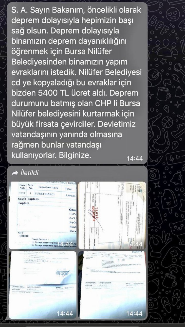Sanayi ve Teknoloji Bakanı Mustafa Varank, Twitter hesabında Nilüfer’de oturan bir vatandaşın kendisine ilettiği bir şikayeti paylaştı.