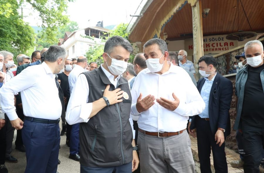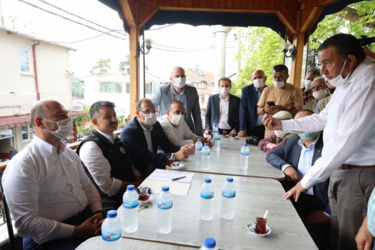 İznik ilçesine bağlı kırsal Müşküle Mahallesi'nde vatandaşlarla sohbet edip bilgi alan bakanlar, Kestel ilçesinde sel zararı oluşan fabrikalarda da inceleme yaptı.