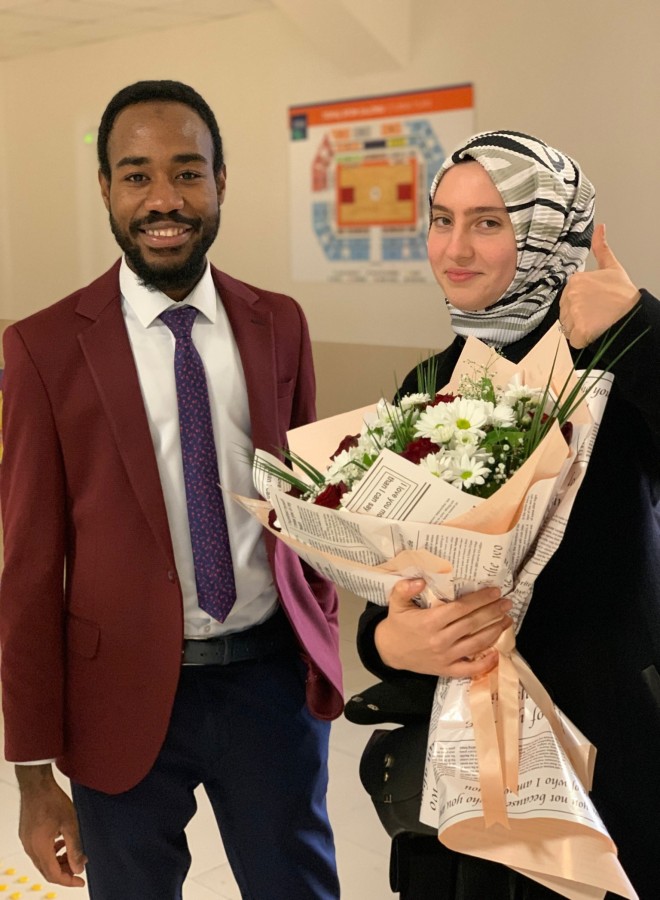 TOFAŞ- UCAM Murcia Basketbol Şampiyonlar Ligi karşılaşmanın devre arasında 12 yıldır Türkiye'de yaşayan ve ticaretle uğraşan Demokratik Kongo Cumhuriyeti vatandaşı 24 yaşındaki Abdoul Karim Kasongo, üniversiteden tanıştığı yüksek lisans öğrencisi Rumeysa Şenay'a parke saha üzerinde sürpriz evlilik teklifi yaptı.