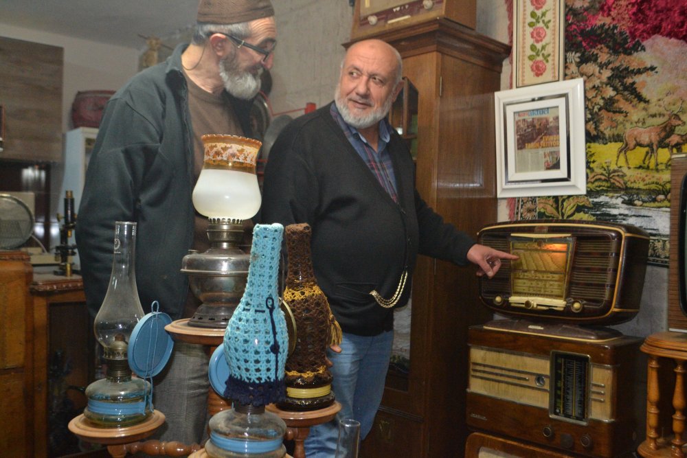 Merkez Bankası’ndan emekli olan Mehmet Şah Tay, evinin bir bölümünü müzeye çevirdi. Evin en alt katında eski radyolardan plaklara, siyah beyaz televizyondan eski tarım aletlerine kadar bir çok antika eşyayı bulmak mümkün.