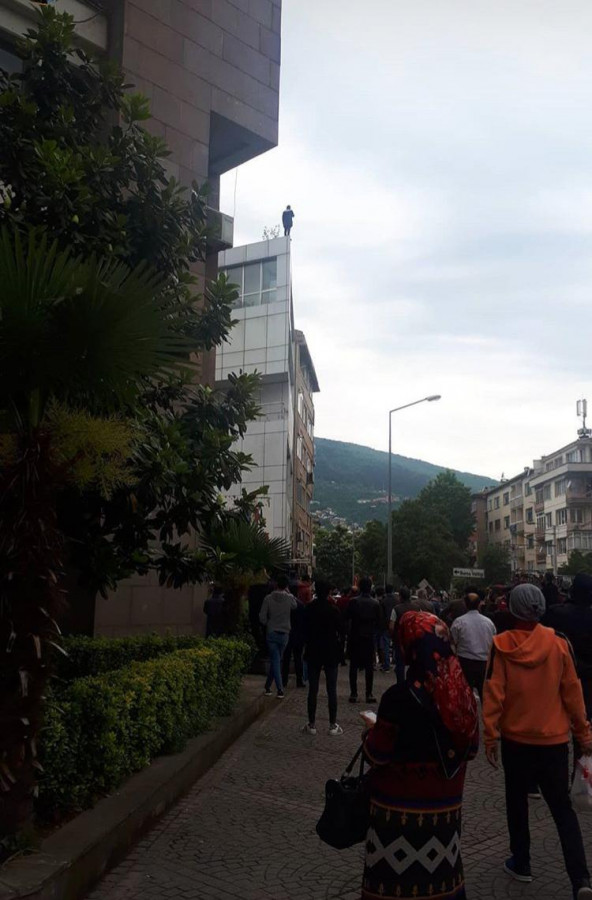Yasin B.'nin çatıya çıktığını gören yüzlerce Bursalı cadde üzerinde toplandı. Sosyal mesafeyi unutup dip dibe duran vatandaşlar cep telefonlarıyla canlı yayın yaptı. Yasin B.'nin kendisini boşluğa atmak istediği anda vatandaşlar 'atlama' diye bağırarak engel olmaya çalıştı. Telefonuna sarılan vatandaşların yanı sıra, diğer binaların çatısına çıkarak izleyenler de pes dedirtti.