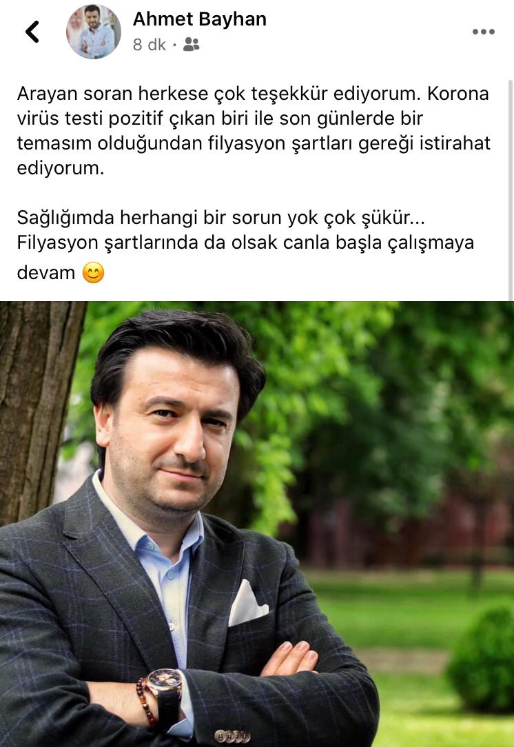 Arayan soran herkese çok teşekkür ediyorum. Korona virüs testi pozitif çıkan biri ile son günlerde bir temasım olduğundan filyasyon şartları gereği istirahat ediyorum.