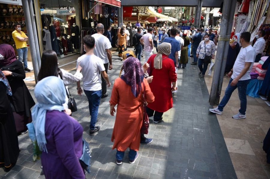 Bayram öncesi Tarihi Çarşı ve Hanlar Bölgesi'ne gelen ve ihtiyaçlarını gidermeye çalışan Bursalılar, ayrıca yine Büyükşehir Belediyesi tarafından 6 farklı bölgeye kurulan dezenfeksiyon ünitelerini kullanarak, salgına karşı daha güvenli hareket etti.