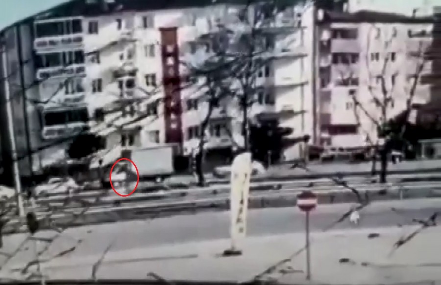 Polis, kazanın ardından şoka giren otomobil sürücüsü Mine E.'yi gözaltına aldı. Kaza, bir iş yerinin güvenlik kamerasınca görüntülendi.