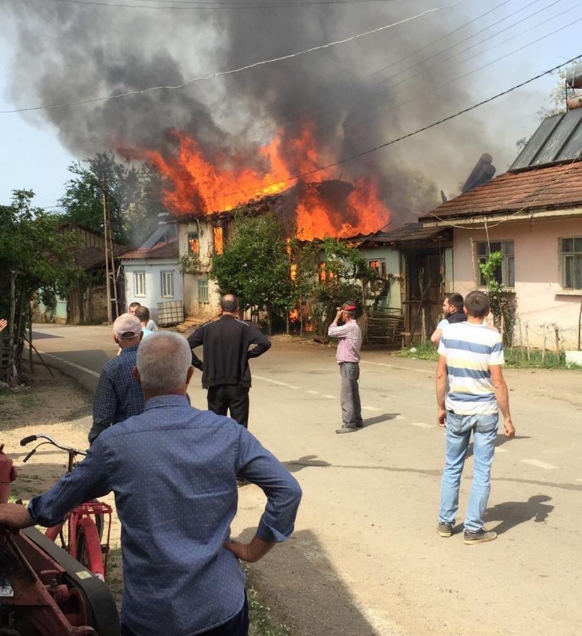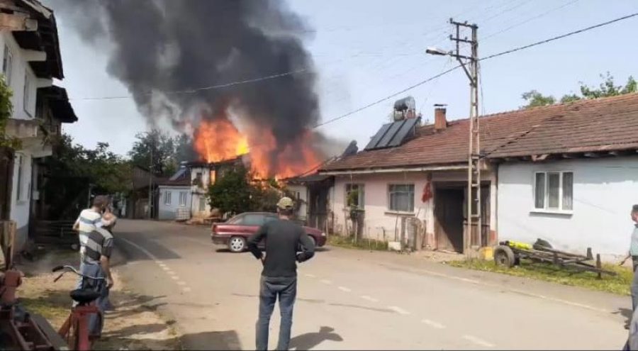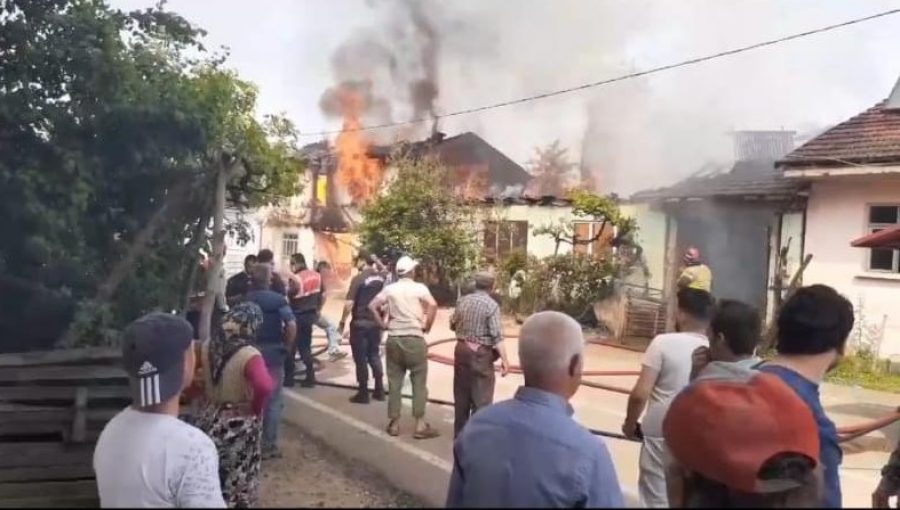 Kısa sürede büyüyen alevler, yan taraftaki Nizamettin Günder'e ait ahşap eve sıçradı. İtfaiye ekiplerine haber verilirken, yangın, ahşap evleri tamamen sardı.