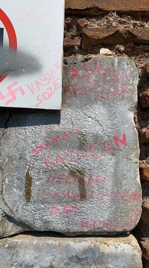 Şimdi kral kapısı yeniden kirletildi. Üzerine boyalar ile yazılar yazıldı ve Nazileri temsil eden gamalı haç çizildi.