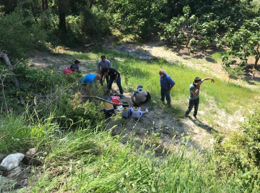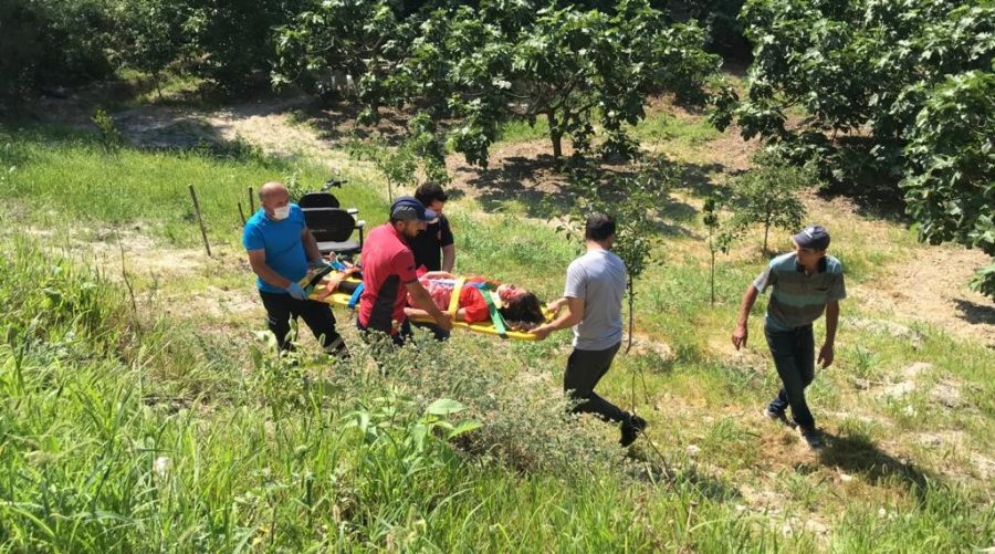 Tarlanın bulunduğu bölgede 2 bölmeli elektrikli bisikleti yol kenarına park etmek isteyen yaşlı kadın bisikleti kaydırınca 3 torunu ve bisiklet ile birlikte 3 metre yükseklikten aşağıya yuvarlandı. Yaralanan Feride nine ve 3 torunu olay yerine gelen 112 ekipleri tarafından hastaneye kaldırıldı.