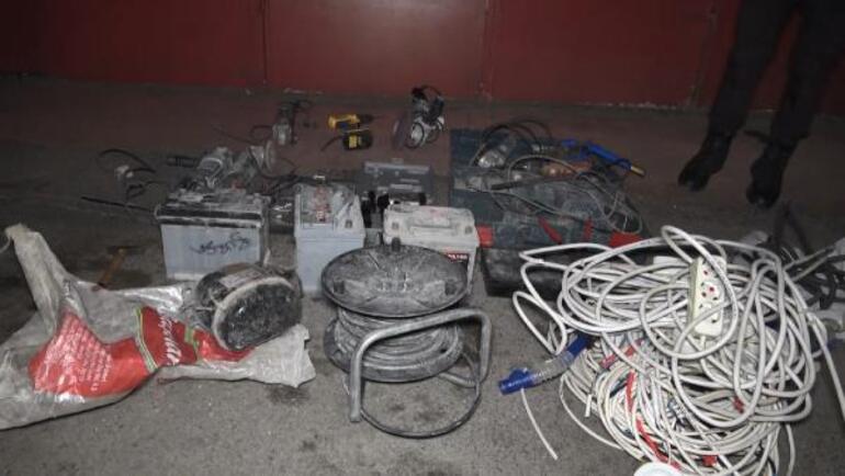 Bir süre sonra şüphelilerin aynı cadde üzerinde 3 farklı iş yerine daha girdiğini tespit eden ekipler harekete geçti. Hırsızlık yapılan iş yerlerinin aynı yönde olmasından yola çıkan ekipler şüphelilerin Ankara Yolu Caddesi istikametinde ilerlediği ihtimali üzerine yoğunlaştı. Bölgede arama çalışması başlatan ekipler, şüphe üzerine el arabasıyla sokakta gezen 2 kişiyi durdurdu. Atık kağıt topladıklarını ve kimliklerinin yanlarında olmadığını söyleyen iki arkadaşın hareketlerinden şüphelenen bekçiler, el arabalarını aradı. Yapılan aramada çuvallara gizlenmiş toplam değeri 40 bin TL olan elektrikli matkap, 3 farklı araçtan çalınan akü ve çok sayıda inşaat malzemesi ele geçirildi.