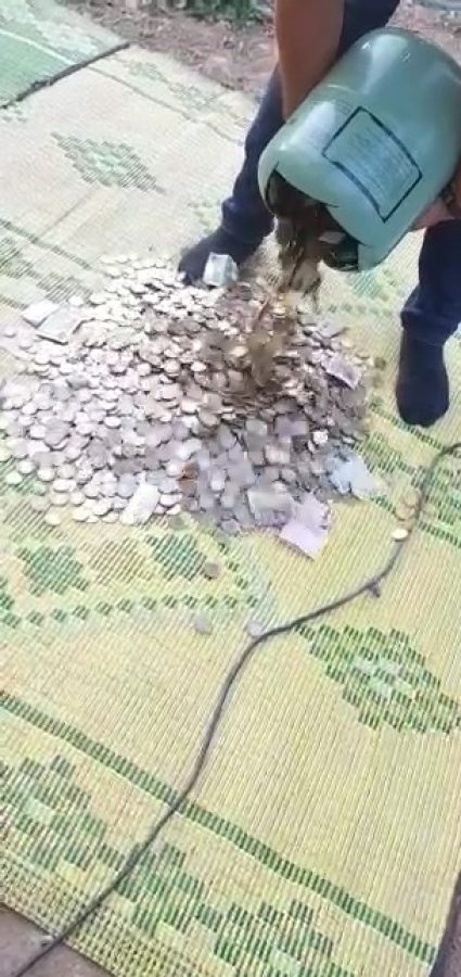 Açılan kumbaradan 12 bin 800 lira çıkarken, ortaya çıkan görüntü şaşırttı. Şen, halının üzerini kapatan bozuk paralar ile öz çekim yaptı.