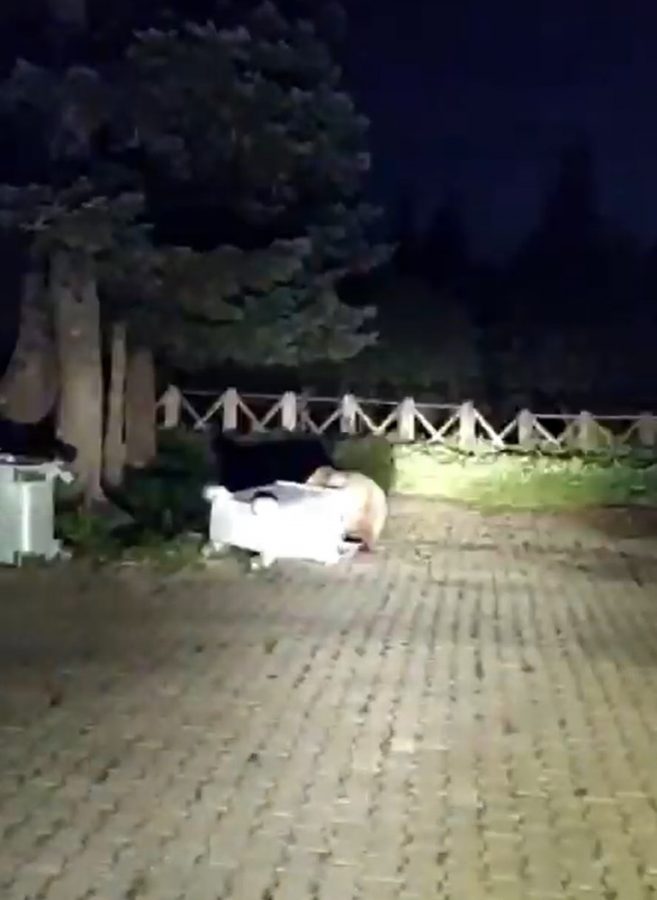 Koronavirüs pandemisi nedeniyle ziyaretçi sayısının düştüğü Uludağ'da, ayılar da yiyecek bulmakta zorlanırken, gece saat 02.00 sıralarında bir ayı dağın eteklerine kadar indi. Buradaki bir çöp konteynerinde yiyecek arayan ayı, bulduğu yiyecekler ile beslendi.