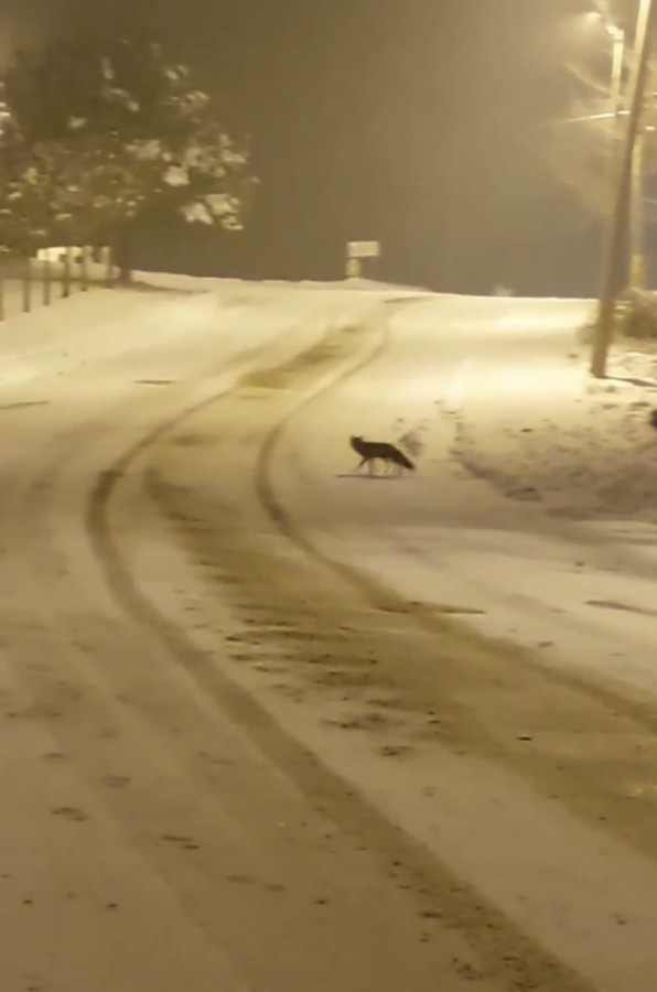 Kar yağdığı için yemek bulmakta zorlanan tilkiler şehir merkezine inerek çöp konteynerlerinden yiyecek aradı.