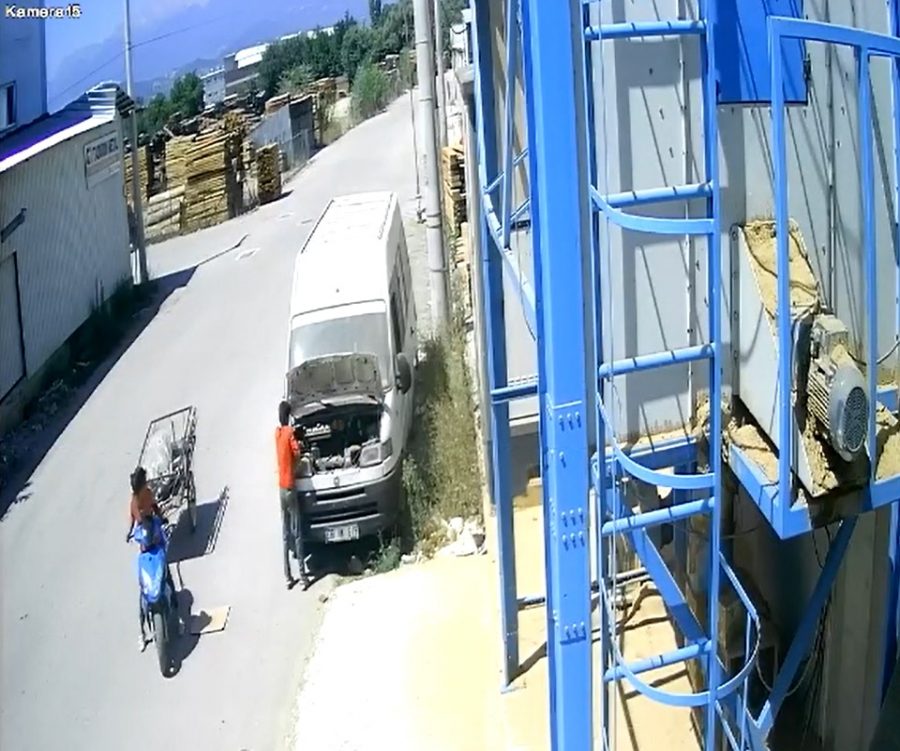 Aracın kaputunu açan Cangüloğlu, akünün yerinde olmadığını gördü. Bunun üzerine çevredeki güvenlik kamerasının kayıtlarını inceleyen Cangüloğlu, minibüsün aküsünün çalındığını görerek polise başvurdu.