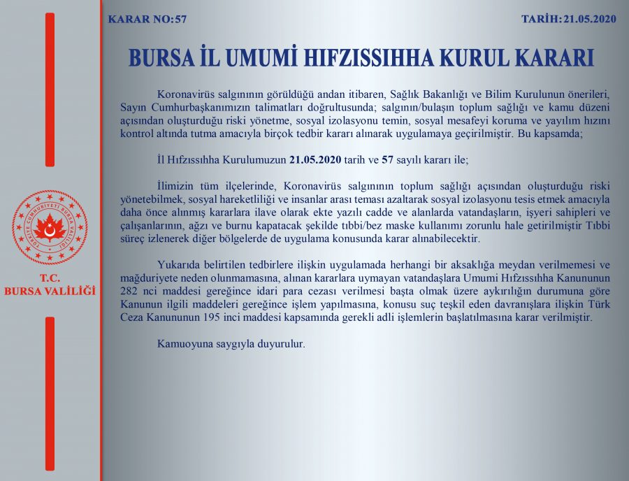 Bursa'da artık maske kullanma zorunlu!