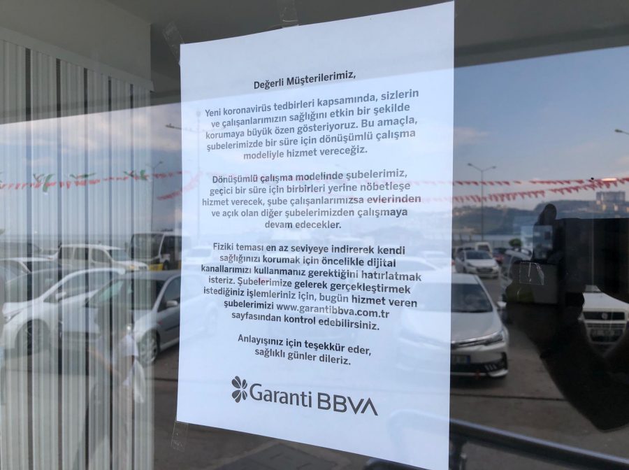Fiziki teması en az seviyeye indirerek kendi sağlınızı korumak için öncelikle dijital kanallarımızı kullanmanız gerektiğini hatırlatmak isteriz. Şubelerimize gelerek gerçekleştirmek istediğiniz işlemleriniz için, bugün hizmet veren şubelerimizi www.garantibbva.com.tr sayfasından kontrol edebilirsiniz. Anlayışınız için teşekkür eder sağlıklı günler dileriz."