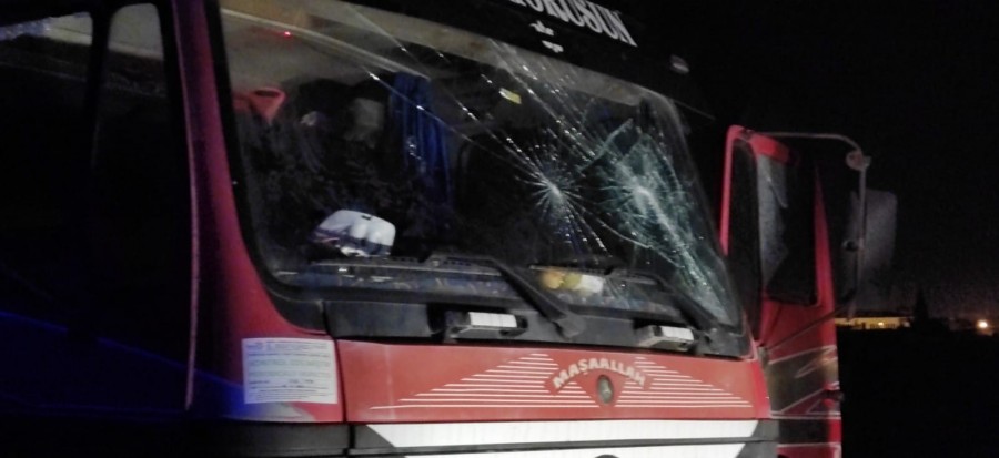 Yol yapım çalışmalarında görev alan Caner Güzel (36) uyumak için kullandığı vince girdi. Üzerinde 3 kişi bulunan motosiklet vinç kamyonunun yanına yaklaştı. 3 kişi ilk önce elindeki çekiçler ile kamyonun camlarını kırdı.