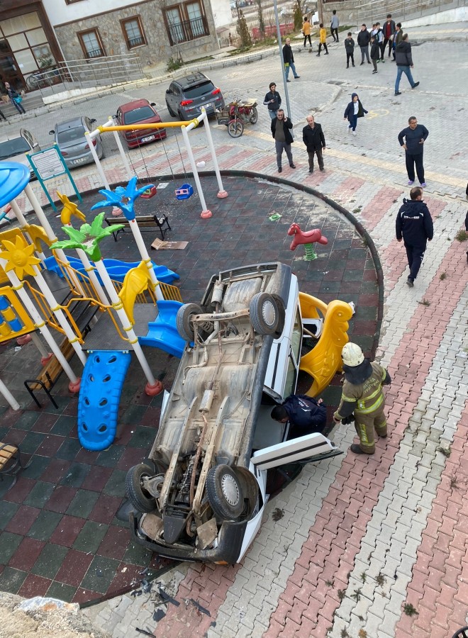 Parkta çocukların olmaması muhtemel facianın önüne geçerken, sürücü Hasan A. yaralandı.