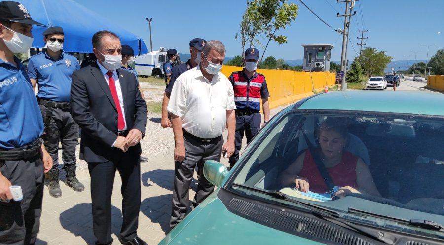Durdurulan sürücü ve yolcuların bayramı tebrik edilerek maske, sosyal mesafe ve hijyen kuralları hatırlatıldı. Sürücülere Kaymakam Görücü tarafından çikolata ve kolonya ikram edildi.