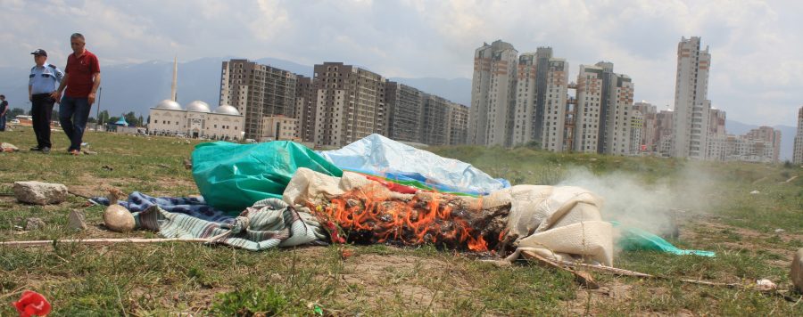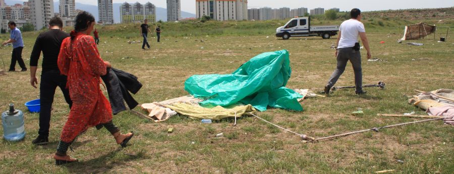 Zabıta ekipleri çoğu dilencilik yaparak geçimini sağlayan çadır kentte yaşayan vatandaşların bulunduğu alana da baskın düzenleyerek çadırlarını yıkıp malzemelerine el koydu. Baskın sırasında kaçmaya çalışan vatandaşlar ve Zabıta ekipleri arasında kısa süreli gerginlik yaşanırken olay yerine çok sayıda polis ekibi sevk edildi. Vatandaşlar zabıta ekiplerine taş atıp sopayla saldırdı. Vatandaşların bir çoğu apar topar araçlarına yükleyebildikleri eşyalarını ve çocuklarını alarak hızlı bir şekilde kaçtılar.