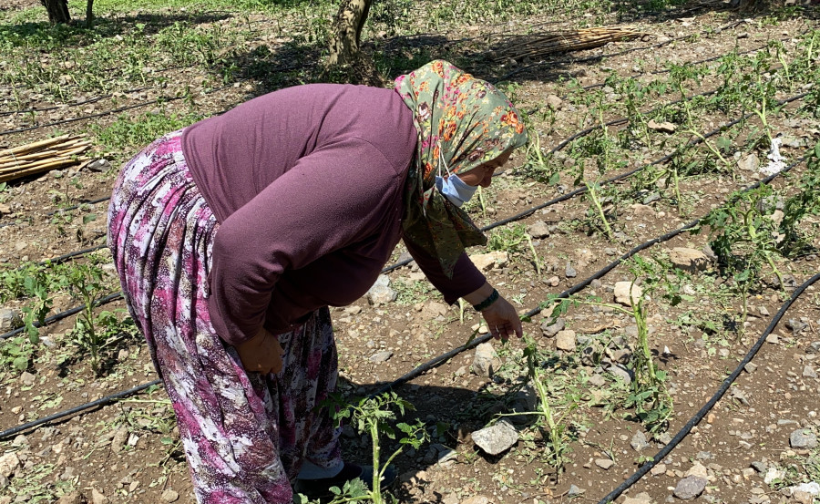 Sel ve dolu, çiftçileri de olumsuz etkiledi. Birçok çiftçi, ürünlerinin zarar görmesi nedeniyle üzüntü yaşadı. Kırsal Çiçekli Mahallesi'nde yaşayan domates üreticisi Aytan Ayaz (63), tarım arazisini sular altında görünce gözyaşlarını tutamadı.