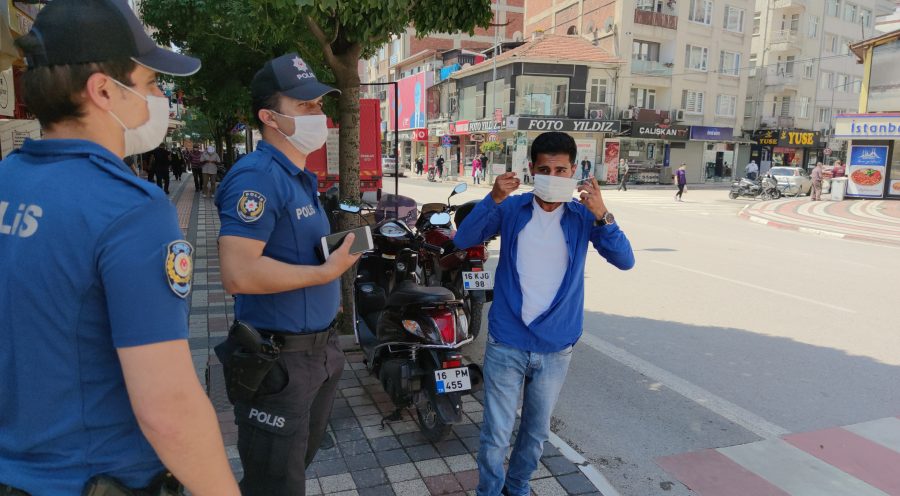 İnegöl ilçesinde uygulama yapan ekipler, maske takmayanlara 900 liralık idari para cezası uyguladı. Atatürk Bulvarı'ndaki uygulamada polis ekipleri, maskeyi elinde taşıyan ve dışarı maskesiz çıkan kişilere de ceza kesti.
