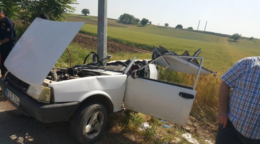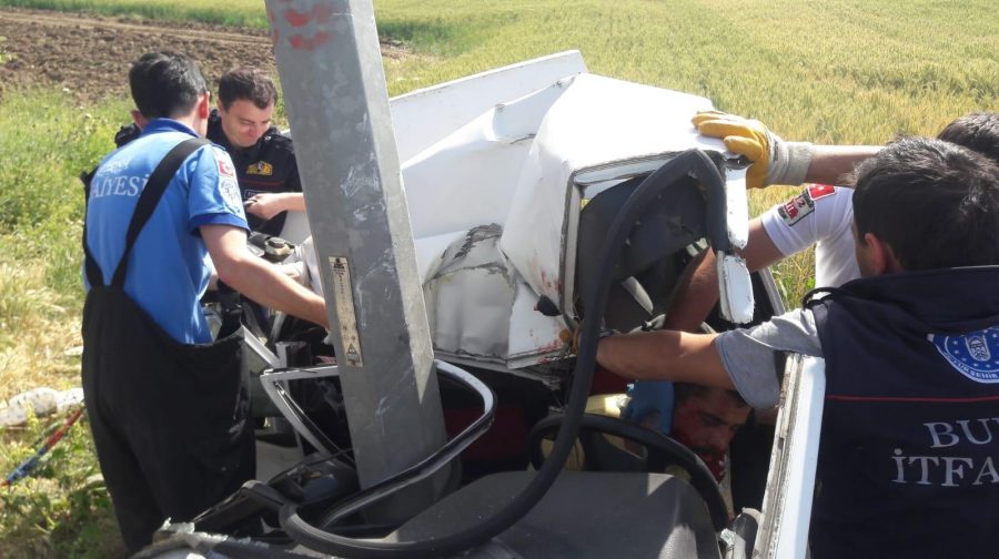 Kazada B.Ş. ile yanındaki M.Ç.B., araçta sıkıştı. İhbarla gelen itfaiye ekibi, şüphelileri sıkıştığı otomobilden çıkardı.