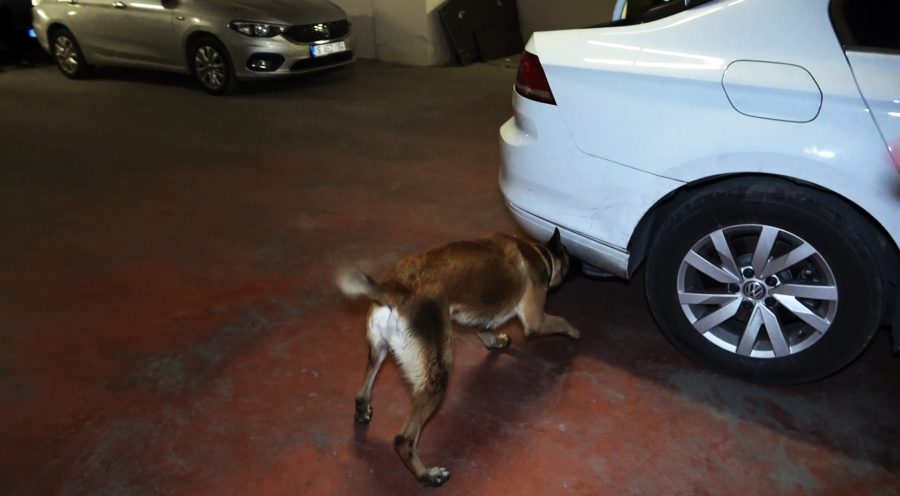 Şüpheli otomobil, burada narkotik arama köpeği 'Fırtına' yardımıyla polisler tarafından detaylı bir şekilde arandı. Fırtına'nın tepki gösterdiği otomobilin motor kaputu, arka tamponu, torpidosu ve çeşitli yerlerinde özel bölmelere gizlenmiş yaklaşık 100 bin captagon hap ve 12 kilogram plaka esrar bulundu.