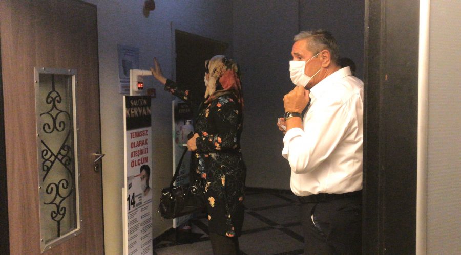 Düğüne gelenler dezenfektan sıkılıp ateşleri ölçülerek salona alındılar.