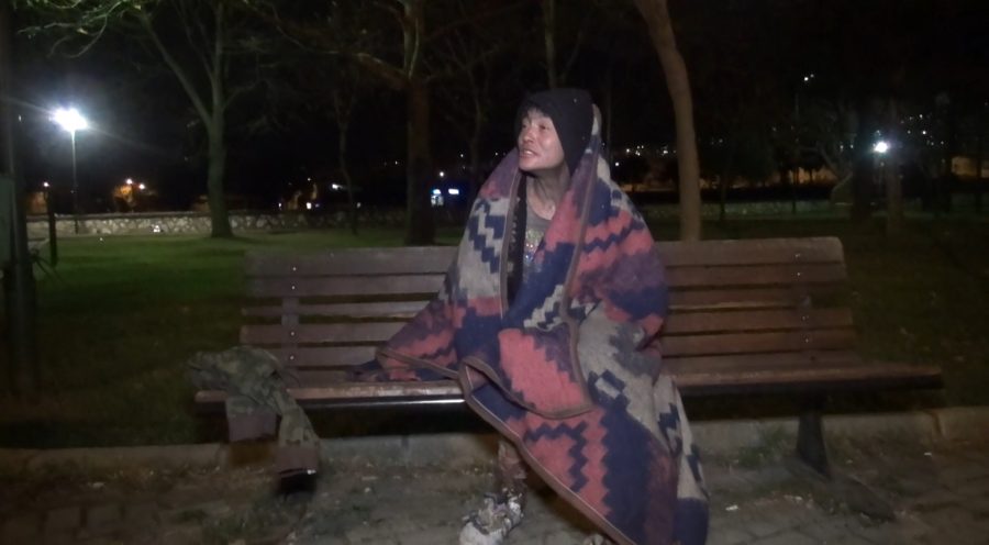Bursa'da kalacak yeri olmayan genç kadın yeni yıla bankta yatarak girdi.