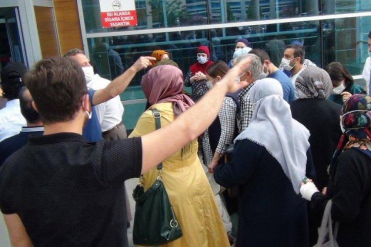 Bursa'da hastane önünde dikkat çeken yoğunluk