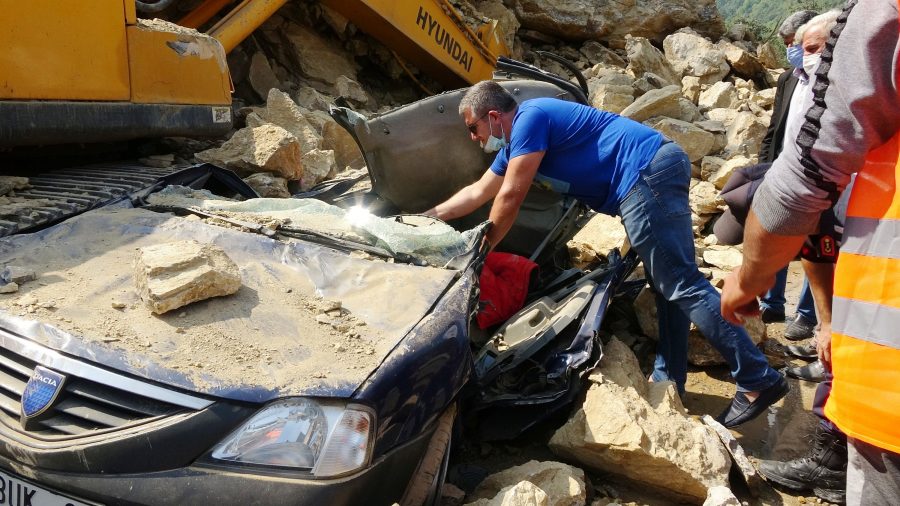 Süleyman Sarı'nın oğlu Oktay Sarı (32), babasının kimliğini aramak için heyelan bölgesine geldi. Hurdaya dönen otomobilde kimlik arayan Sarı'ya yakınları yardım etti ancak belgeye ulaşılamadı.