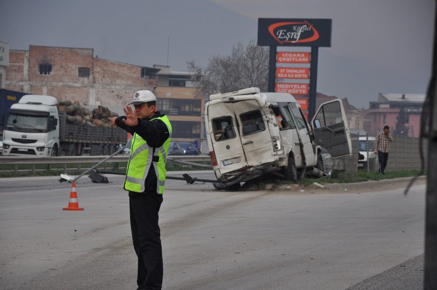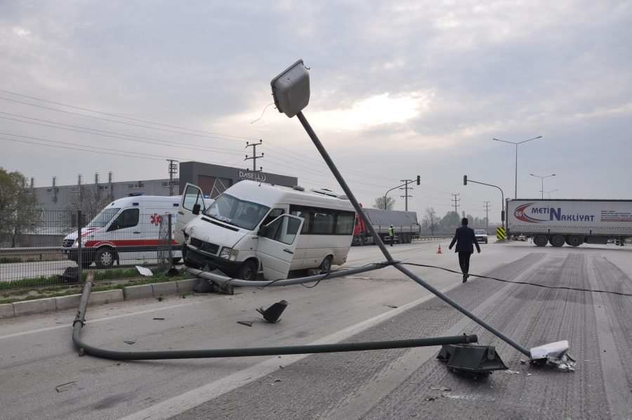 Tır'ın arkadan çarpması sonucunda kontrolden çıkan servis minibüsü 30 metre sürüklenerek karayolu üzerindeki sinyalizasyon direğine çarparak devirdi.