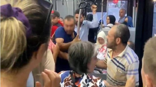 En sonunda küfür ederek otobüsten inen şüpheli ve yakını otobüstekiler tarafından kovalandı. Yerden kaldırım taşını alarak atmaya çalışan şüphelinin yakını diğer yolcular tarafından etkisiz hale getirildi. Yere düşen kişi, tekmelerden kurtulamadı.