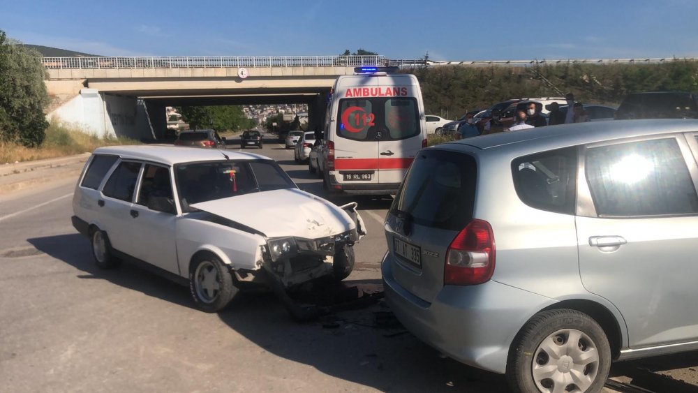 Bursa'da kaza! Kavşakta otomobiller birbirine girdi