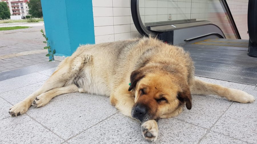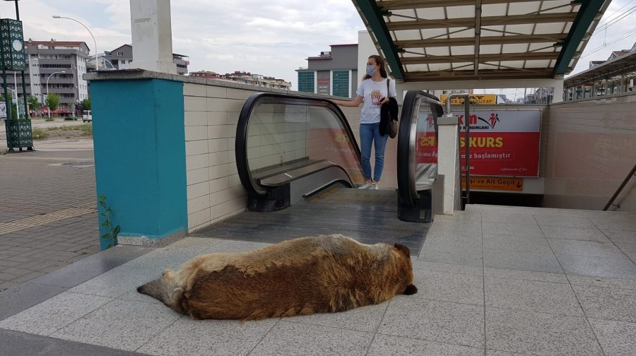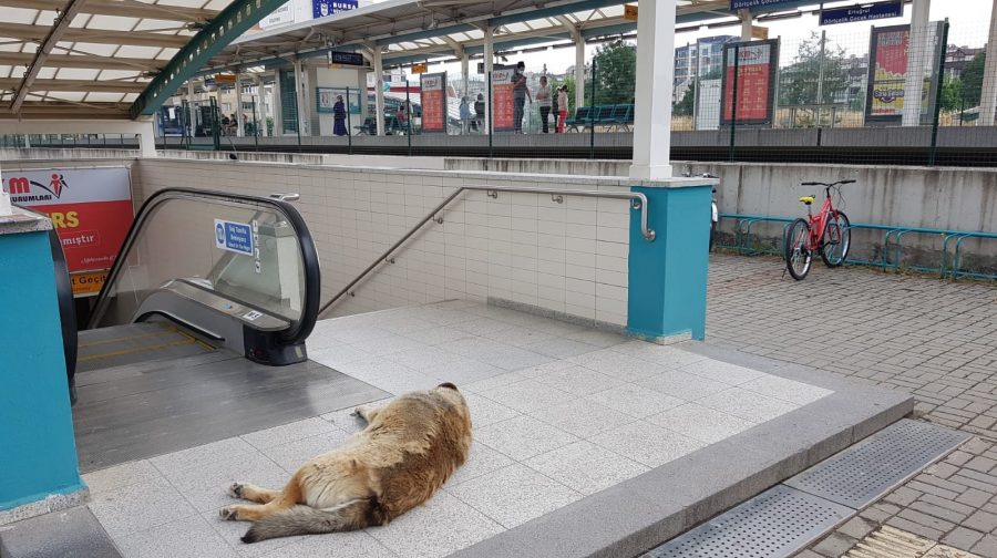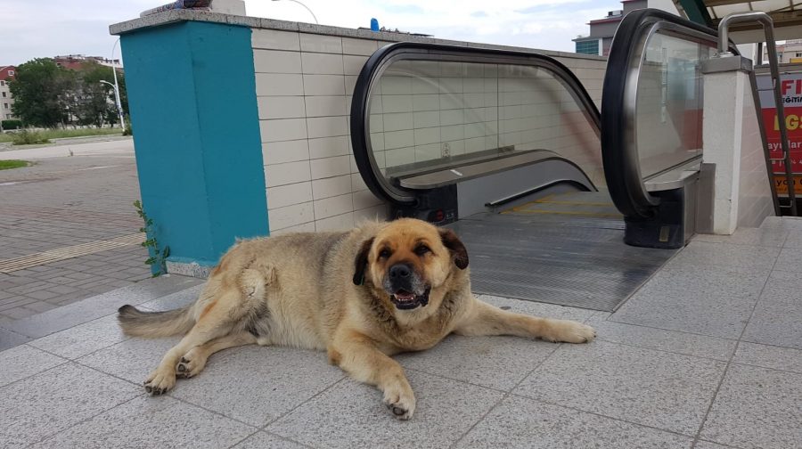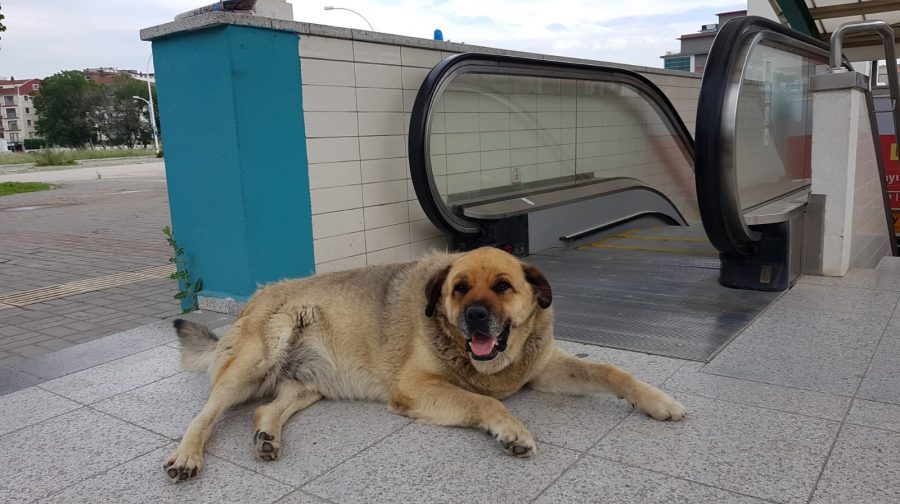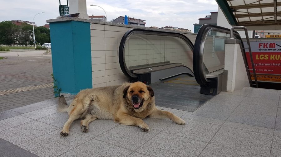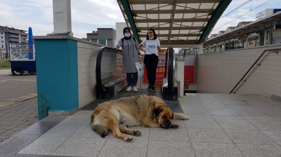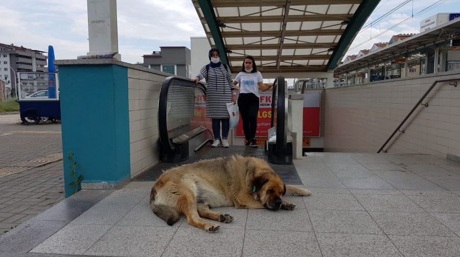 Ertuğrul metro istasyonunun girişine yatan sokak köpeği, burada saatlerce bekliyor. Metrodan çıkan vatandaşlar karşılarında köpeği buluyor.
