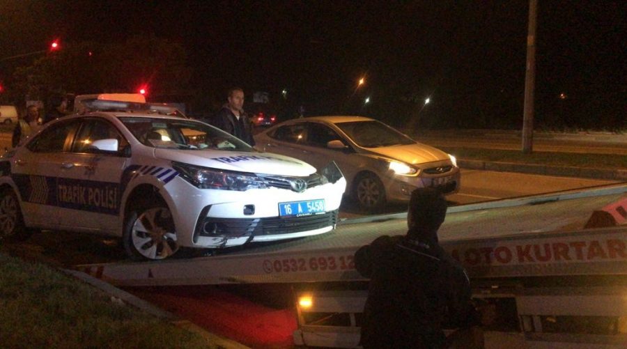 Bursa'da kırmızı ışıkta geçen sürücü polislere çarptı!