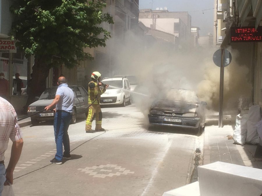 Edinilen bilgiye göre, Sultaniye Mahallesi'nde yaşayan ve alışveriş için Karacabey'e gelen Rıdvan K., 16 BRC 62 plakalı aracını Tabaklar Mahallesi Sadık Yılmaz Caddesi üzerine park ederek markete girdi. Market alışverişini yapan Rıdvan K., daha sonra tekrar arabasına binip otomobilini çalıştırmak istediğinde araç motor kısmından alev aldı.