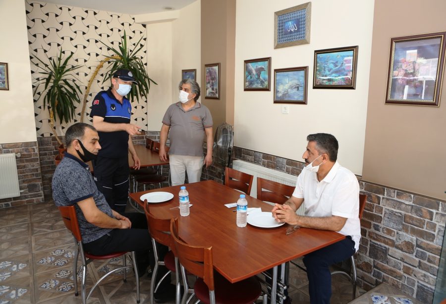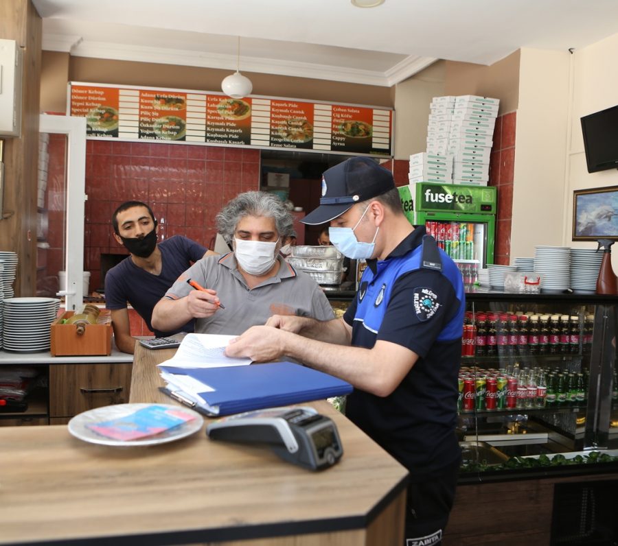 Müşterileri de sosyal mesafe ve maske kullanımına dikkat edilmesi yönünde bilgilendiren ekipler, işyeri sahiplerine, yayınlanan genelge hakkında tebligat yaptı.