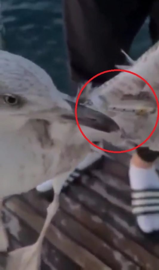 Gemlik ilçesi, Kurşunlu Mahallesi açıklarında, Zekican Saraç ile Eray Dursun, bir martının çırpındığını ve uçamadığını gördü.