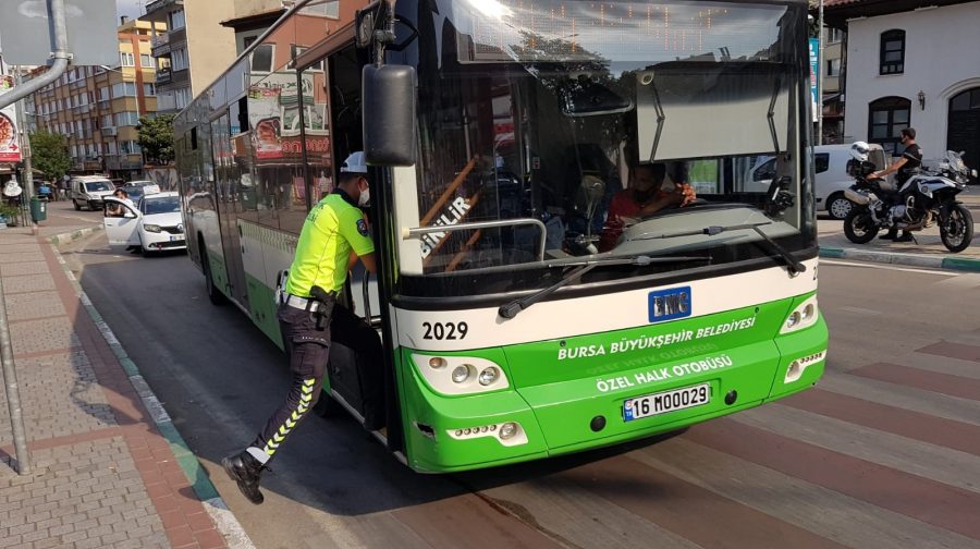 Çekirge meydanında uygulama yapan polis ekipleri, araçları tek tek durdurup araçların içlerine maskesiz yolcu var mı diye kontrol etti.