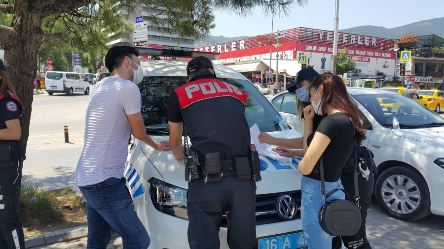 Kentin birçok noktasında Bursa Emniyet Müdürlüğü'ne bağlı polis ekipleri vatandaşları sosyal mesafe kuralına uymalarına yönelik anonslar yaparak uyardı.