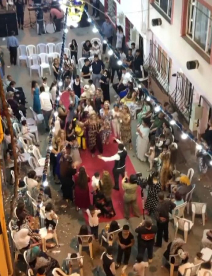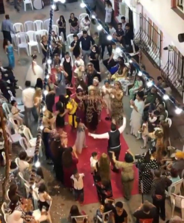 Düğüne katılan davetliler, tedbirleri hiçe sayarak kuralları uygulamadı. Bir sokak düğününde ise onlarca kişi el ele tutuşup, halay çekti.