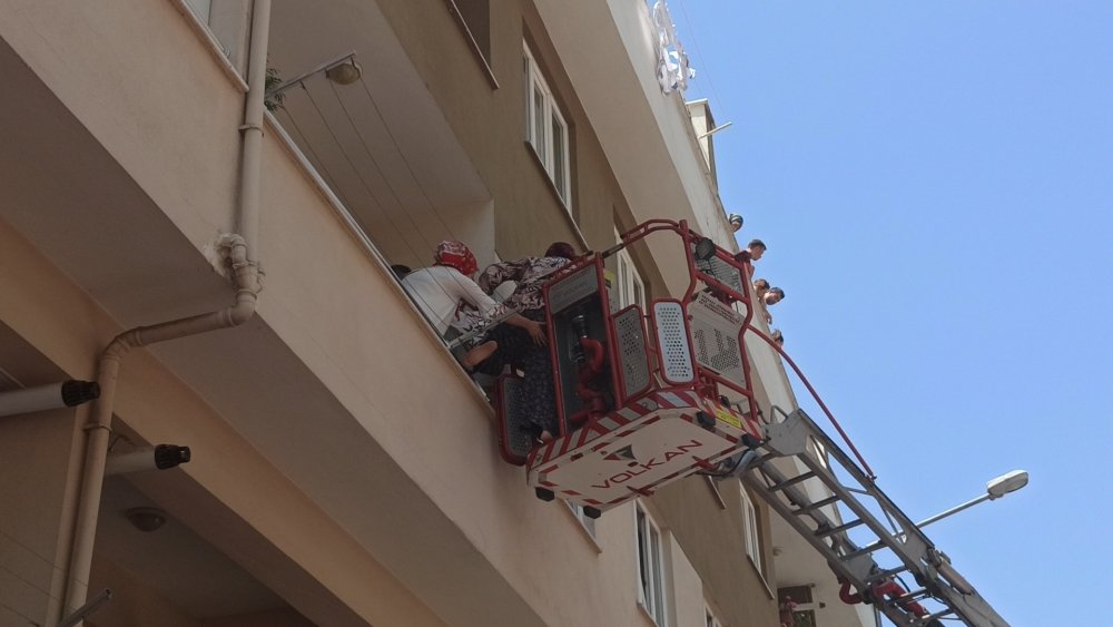 Bursa'da matkap patladı, balkonda mahsur kalanları itfaiye kurtardı