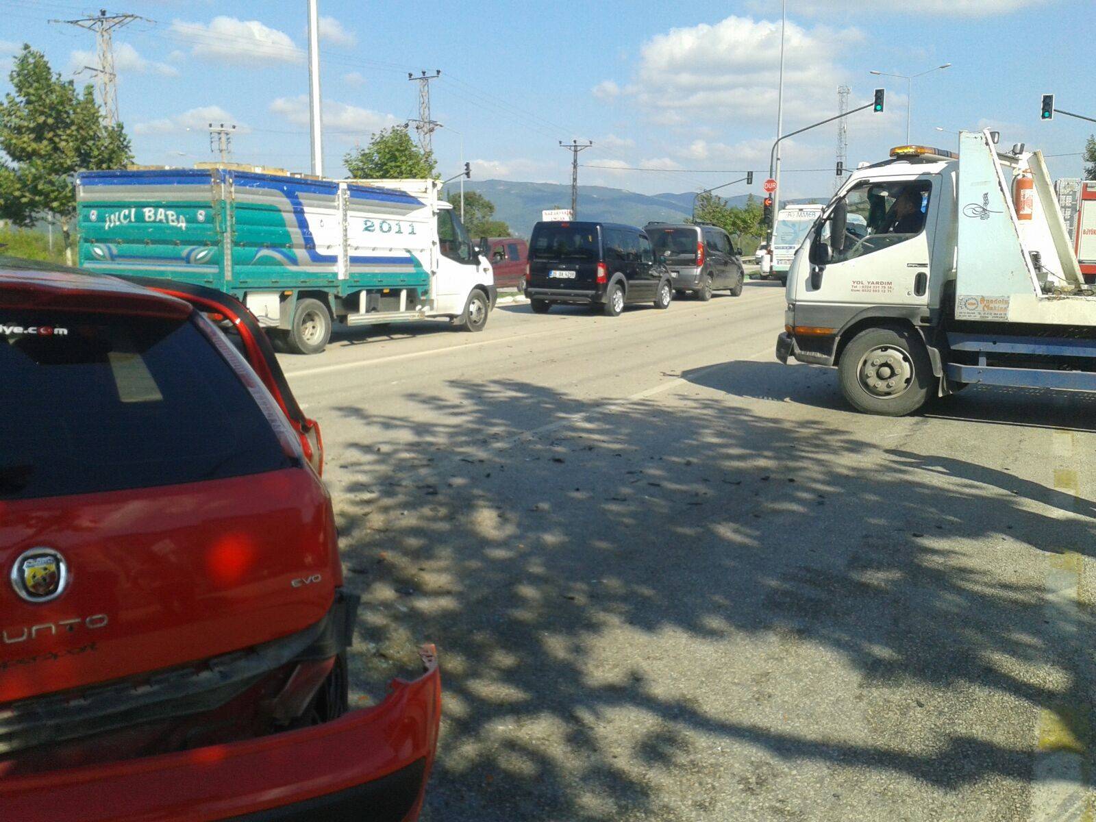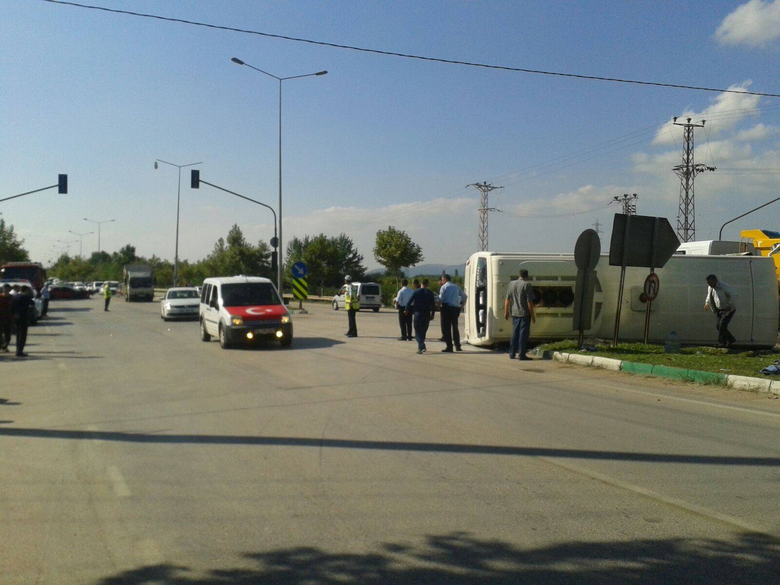 Alınan bilgiye göre, Berkay Ö. idaresindeki 16 NF 417 plakalı otomobil Ankara yönünden şehir merkezine gelirken, başka bir aracın sıkıştırmasıyla karşı yöne geçti. Bursa'dan İnegöl'e giden Ali K. yönetimindeki 16 PC 005 plakalı yolcu midibüsü de üzerine gelen otomobile çarpmamak için direksiyonu kırınca yan yattı.